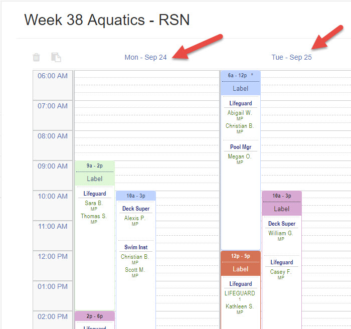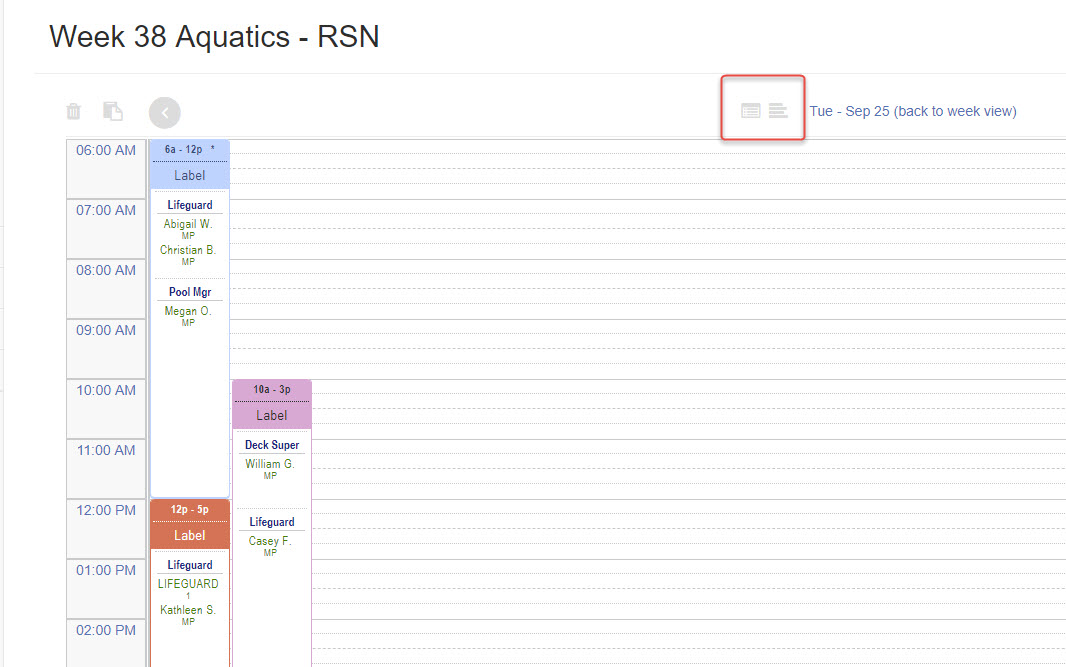 7. The grid view shows the shifts horizontally for the day. You cannot change the day on the grid view but you can use the gear icon above to slice and dice the data