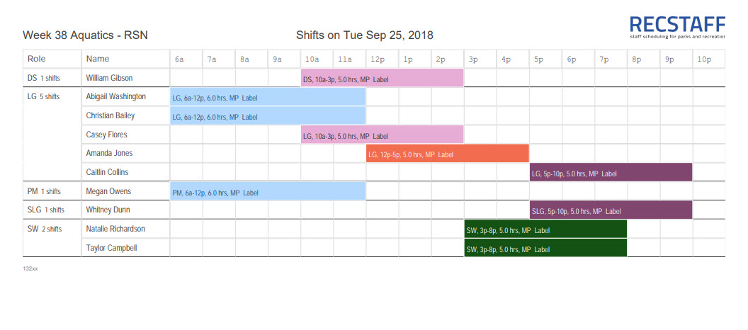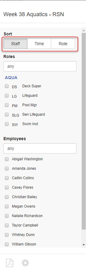 8. You can sort by staff, time and roles and within roles and staff you can choose all or groups or individuals.