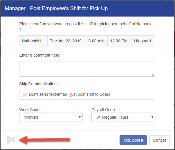 Click on the Post icon at the left of the Shift Detail dialogue box.