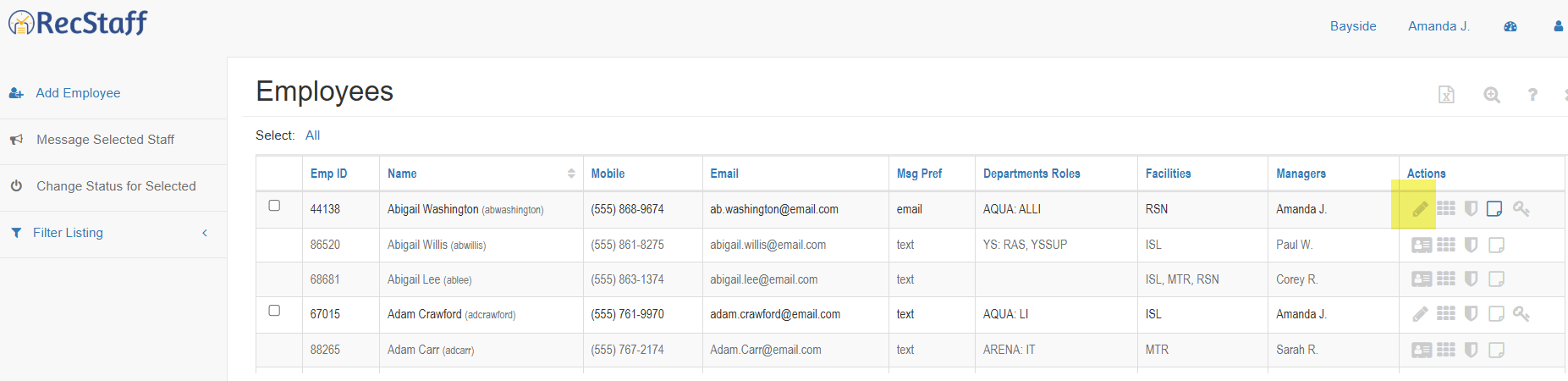 6. Under the Actions column click on the edit pencil icon of the employee you want to reactivate