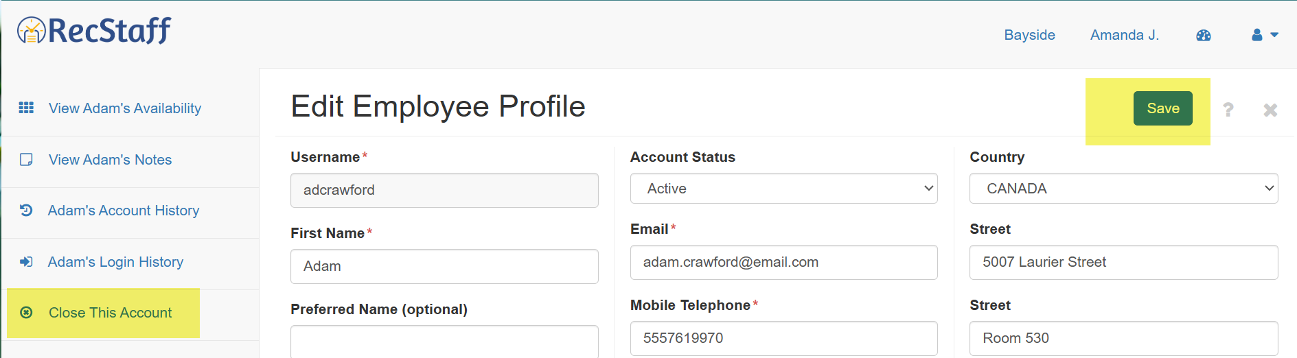 In RecStaff, staff accounts can be closed or inactivated, depending on the situation.