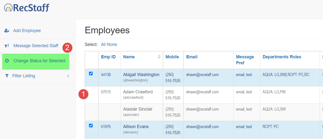 3. Click on the check box of the employees you want to make inactive