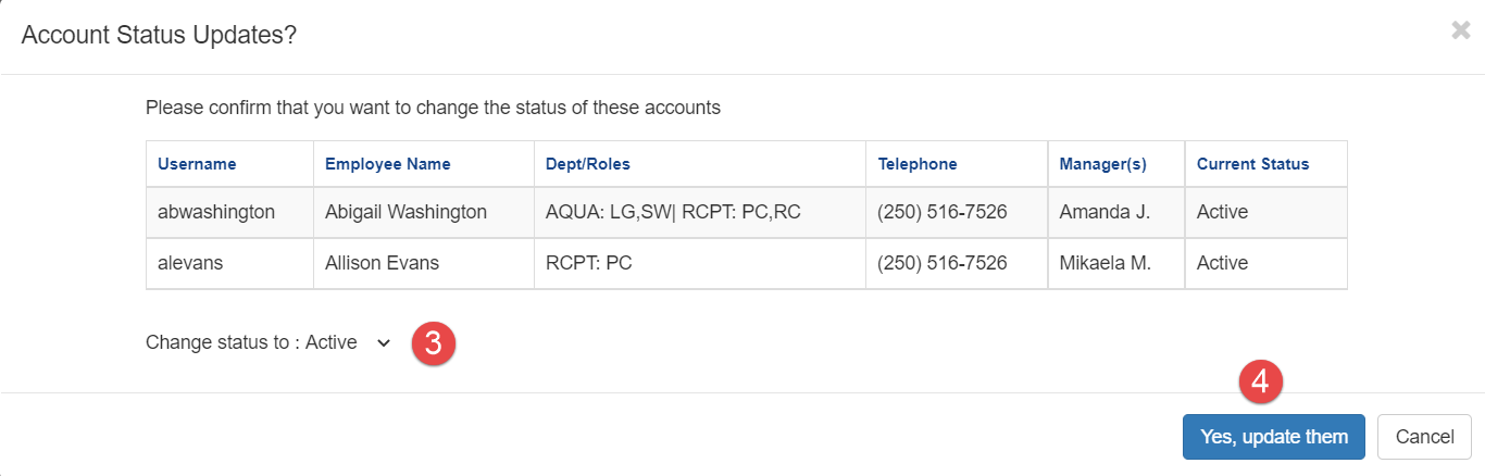 The accounts will now be inactive and the employees will not be able to log in until you make them active again.