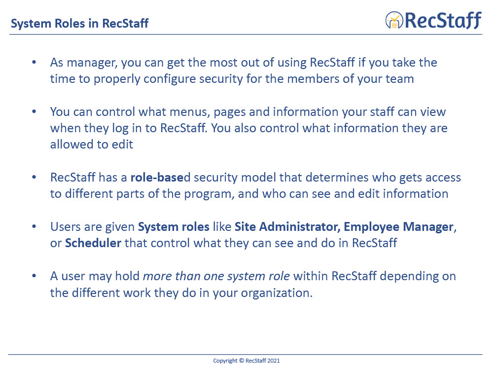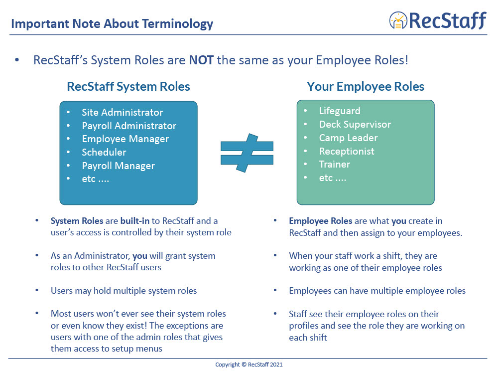 Note: Staff with no management duties but appear on schedules to work have the system role of employee.