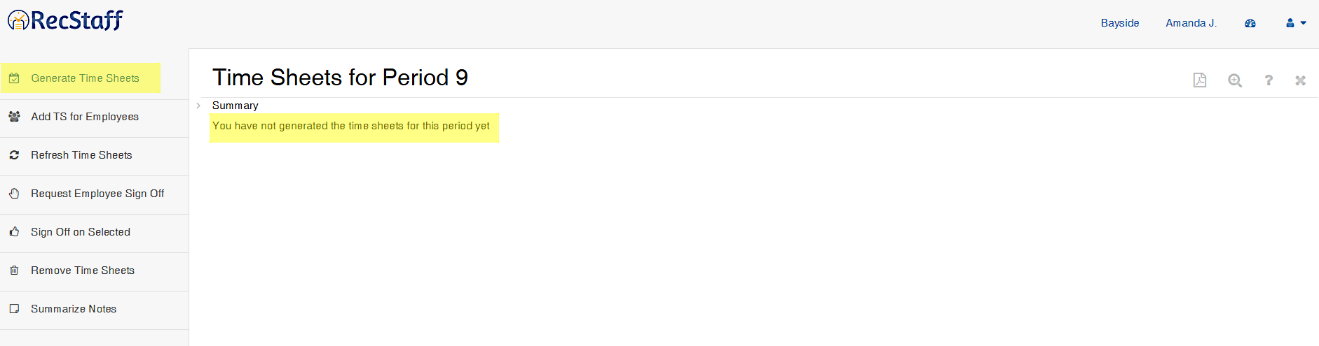 The report reminds you (again!) that you haven't generated timesheets yet.