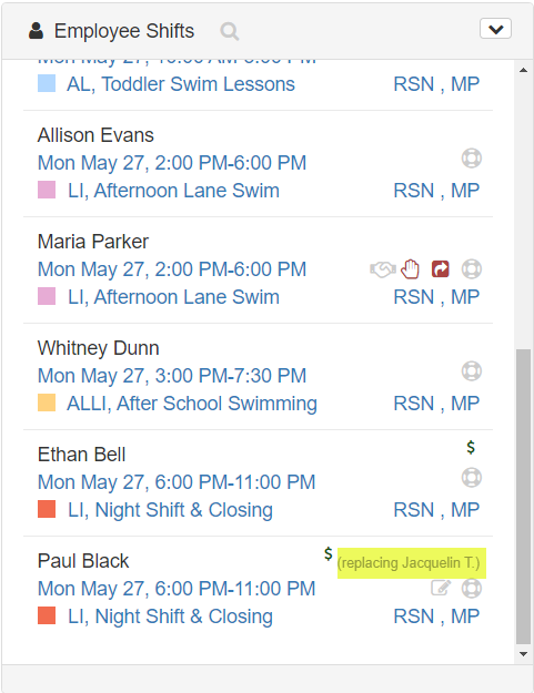 There are a number of ways to tell when a shift has been reassigned to someone else without going into the shift detail and looking at the shift history tab or going to the shift listing report.